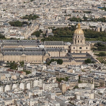 الوجه الغربي لِلِـإِنْفَالِيدَز من برج إيفل في باريس، فرنسا.